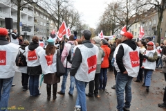 Mit sechs Bussen waren etwa 120 AWO-Mitarbeiter am 8. November 2010 aus dem Umland nach Krefeld gekommen und demonstrierten vor den Geschäftsräumen der Arbeiterwohlfahrt.