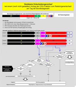 Da die CDU jedoch noch ausdrücklich eigene Vorstellungen zum Termin eines solchen Entscheides hat, nämlich der Tag der Bundestagswahl (22.09.2013), weil man sich dadurch das sichere Erreichen des erforderlich Quorums von 10% der Bürger (= Wahlberechtigte), also ca. 21.000 erhofft.