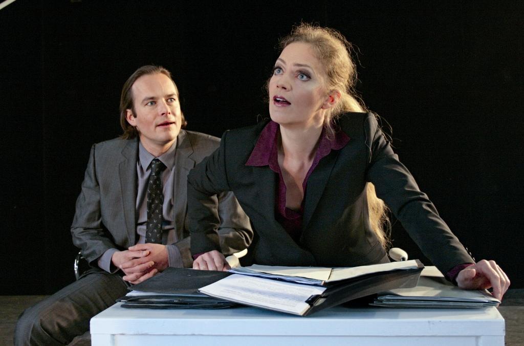 Eine Wucht zu sehen und zu hören, wie die beiden Darsteller sich die Texte zuwerfen, in ihrer Rolle versinken. Katrin Filzen und der Grimmepreisträger Martin Lindow machten hier schon deutlich, dass er auch hier der Unterlegene sein wird. Sie versuchen das Zusammenleben dennoch.