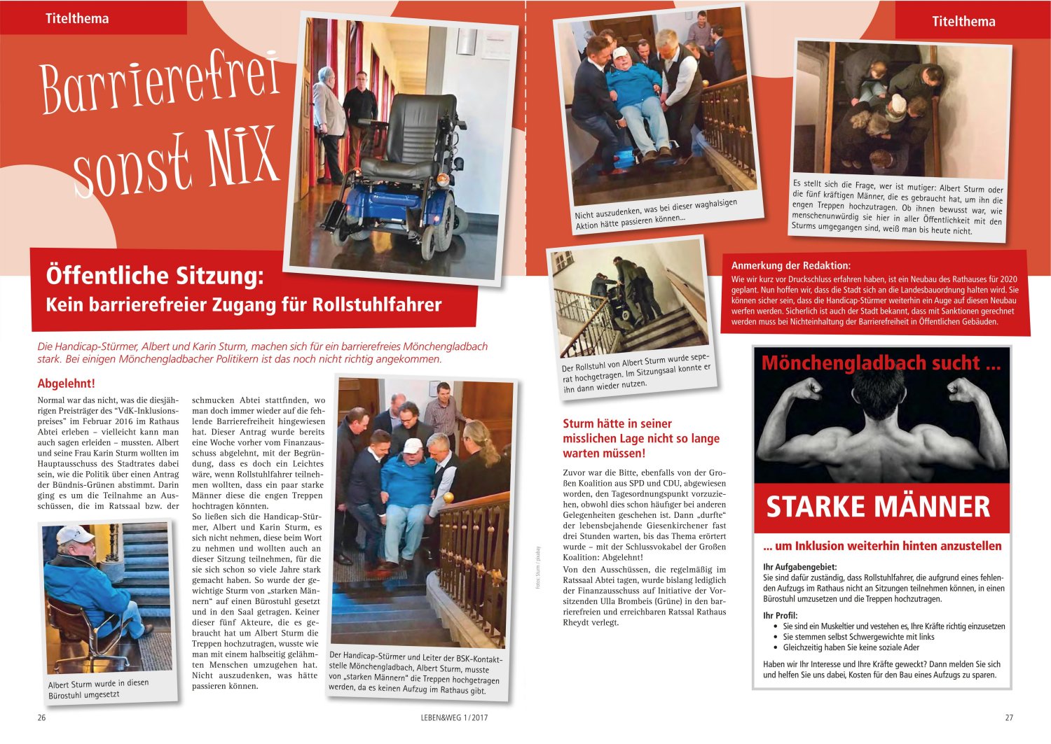 Barrierefreiheit in Mönchengladbach im Magazin „Leben & Weg“ des Bundesverbandes Selbsthilfe Körperbehinderter (BSK) [mit Download]