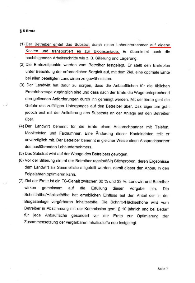 „Der Betreiber (Anm. d. Red.: der Biogas-Anlage) erntet das Substrat durch einen Lohnunternehmer auf eigene Kosten und transportiert es zur Biogasanlage. …“
