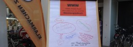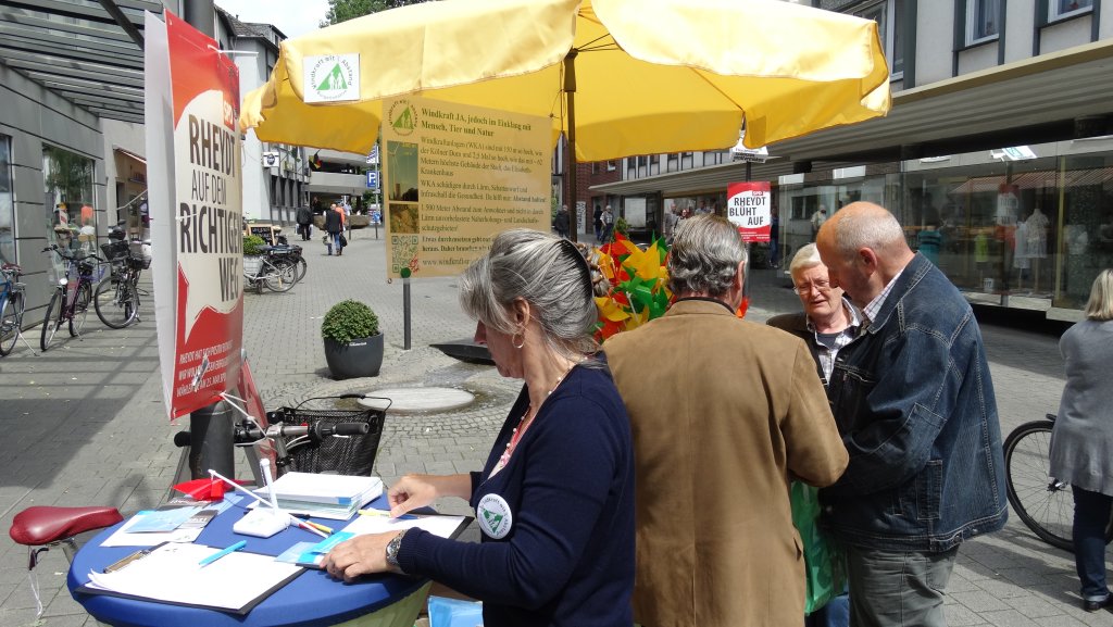 Ganz in der Nähe der Stände der Parteien sammelte die Initiative „Windkraft mit Abstand“ weitere Unterschriften gegen mehr Windkraftanlagen in Mönchengladbach, insbesondere in der Nähe von Buchholzer und Hardter Wald.