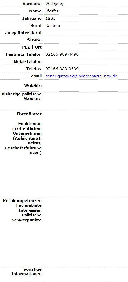 Kandidaten PIRATENPARTEI | Wahlbezirk 11 - Eicken-Süd | Kaiser-Friedrich-Halle